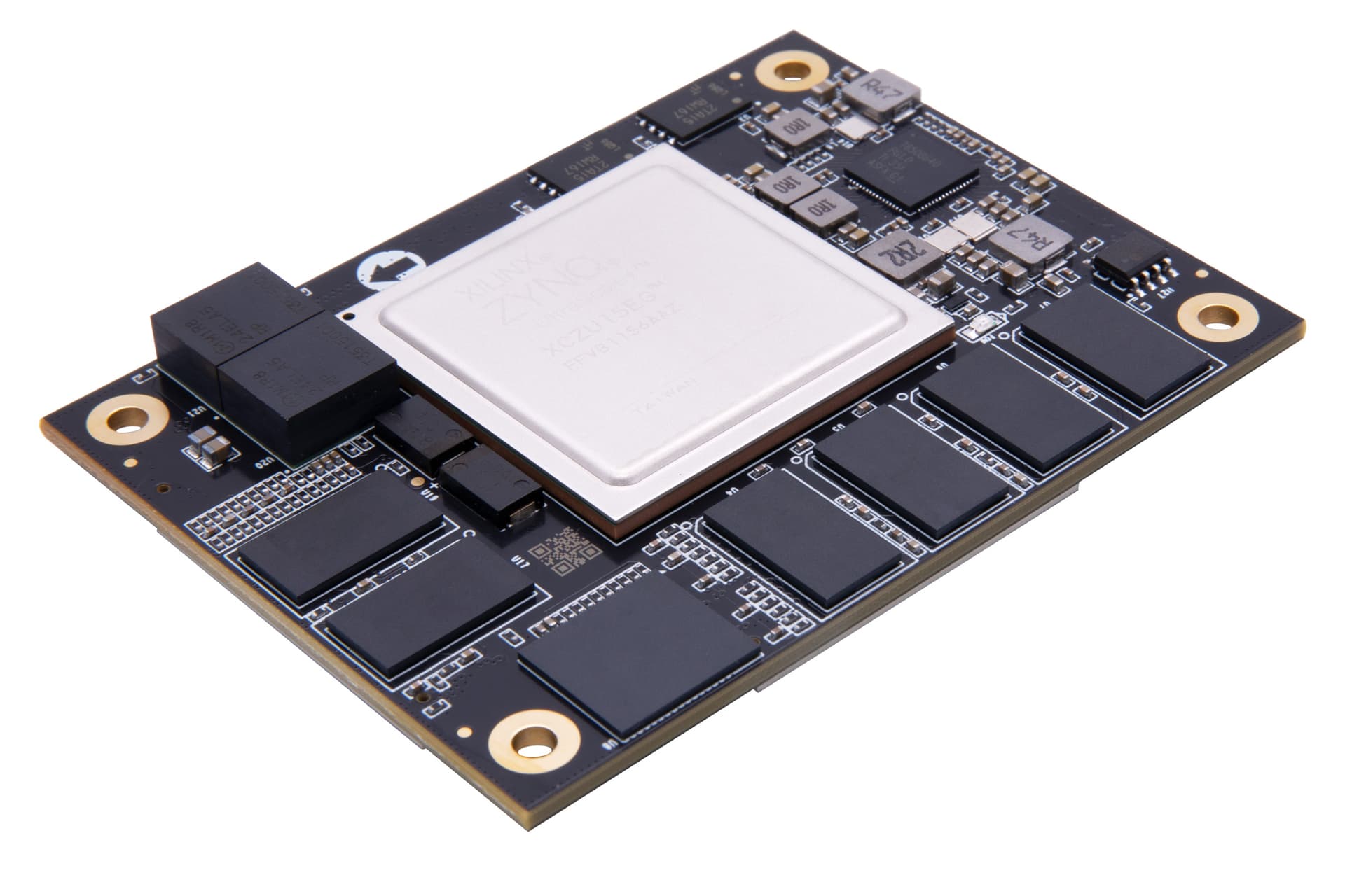 The ACU15EG System-on-Chip (SoC) System-on-Module (SoM) combines high-end AMD/Xilinx Zynq™ UltraScale+™ MPSoC-series device with fast DDR4 SDRAM, eMMC Flash, dual parallel Quad-SPI Flash and thus forms a complete and powerful embedded processing system. It's suitable for applications such as Artificial Intelligence, Computing, Automotive, Industrial, Video, and Communication, etc.