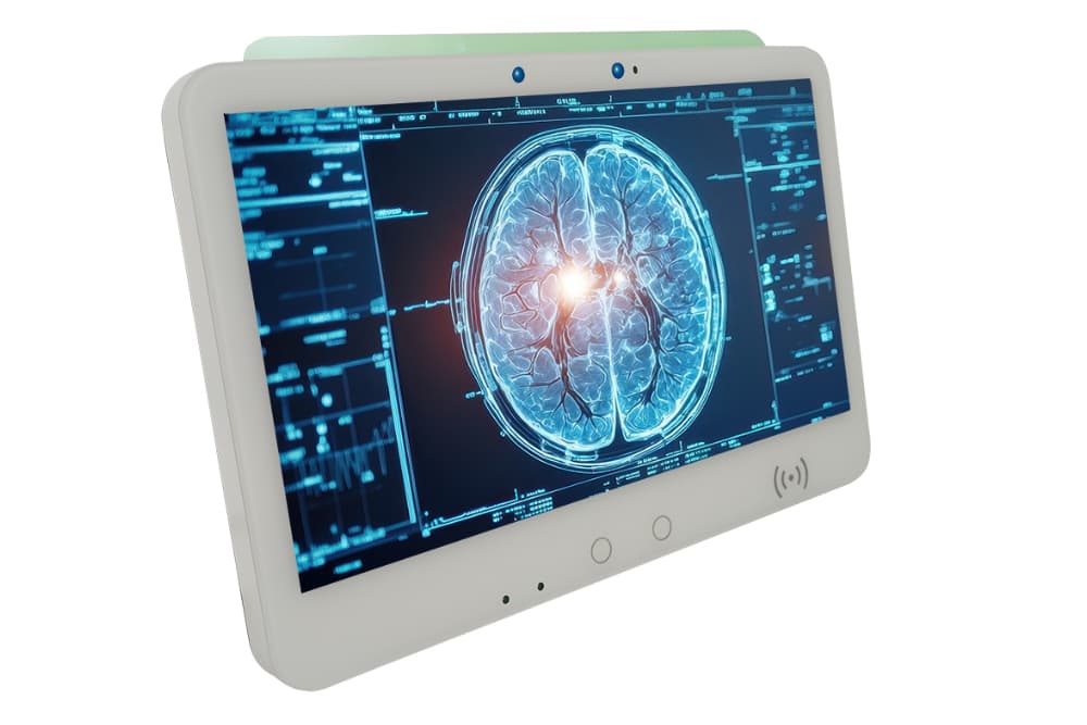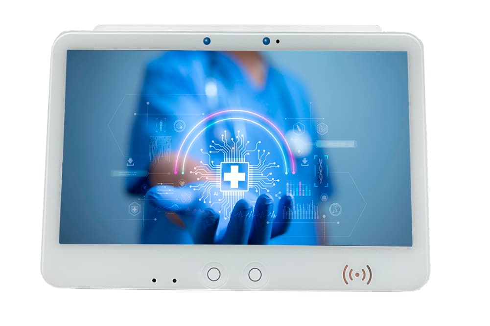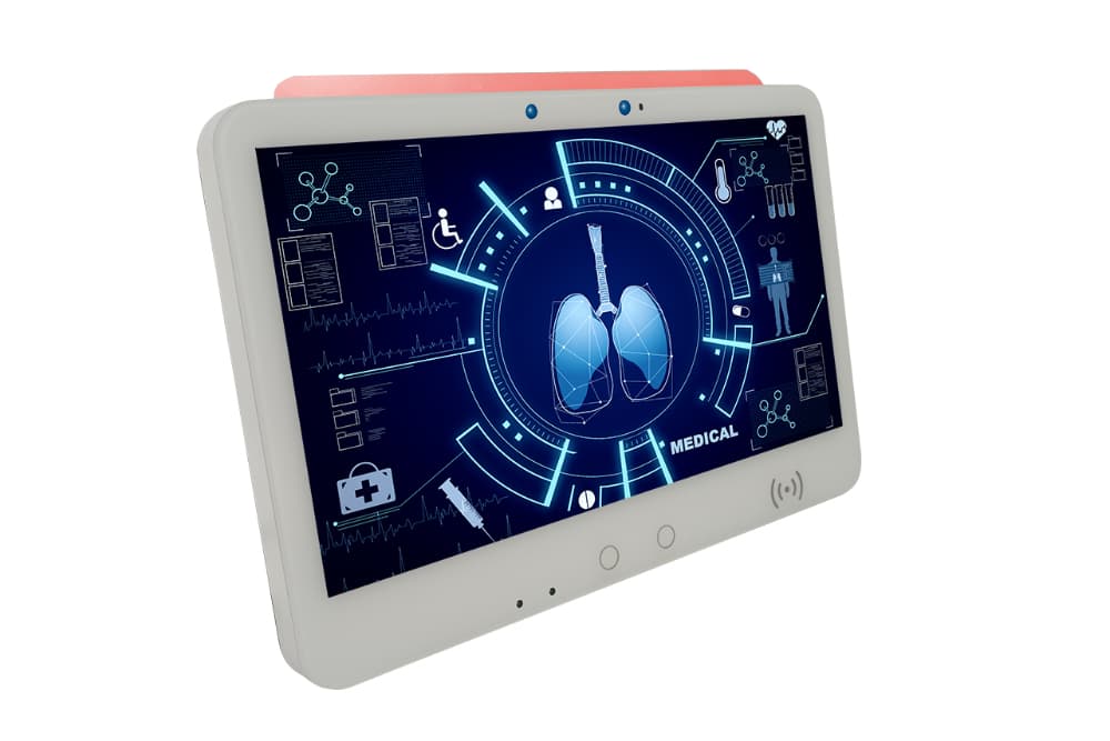 Der weiße, hochmoderne 15,6"-Touch-Monitor von FORTEC Integrated setzt neue Maßstäbe in der medizinischen Technik. Mit seiner fortschrittlichen Technologie und eleganten Optik ist er die ideale flexible Plattform für medizinische Einrichtungen, die Wert auf Qualität und Zuverlässigkeit legen. Highlights sind die Ein-Kabel-Lösung, eine Kontrollleiste, die die Funktionsfähigkeit überprüft und optisch ausgibt sowie im Notfall die Funktion der Einheit sperrt. Eine flexibel zu bestückende Connectivity-Box, die unterschiedlichste Daten für die Plattform bereitstellen kann, sorgt dafür, dass die Lösung den neuesten Cyber-Security-Anforderungen genügt.