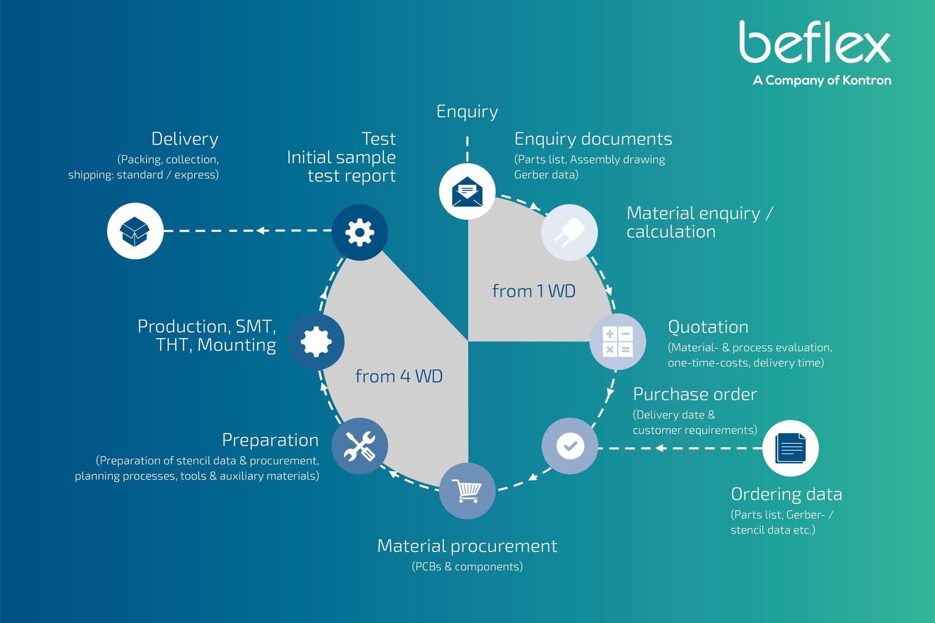beflex electronic, ein Unternehmen der Kontron-Gruppe, ist der Spezialist für kleine bis mittlere Stückzahlen. Vom Electronic Prototyping bis zur Kleinserienfertigung komplexer Baugruppen deckt beflex das gesamte Spektrum ab.