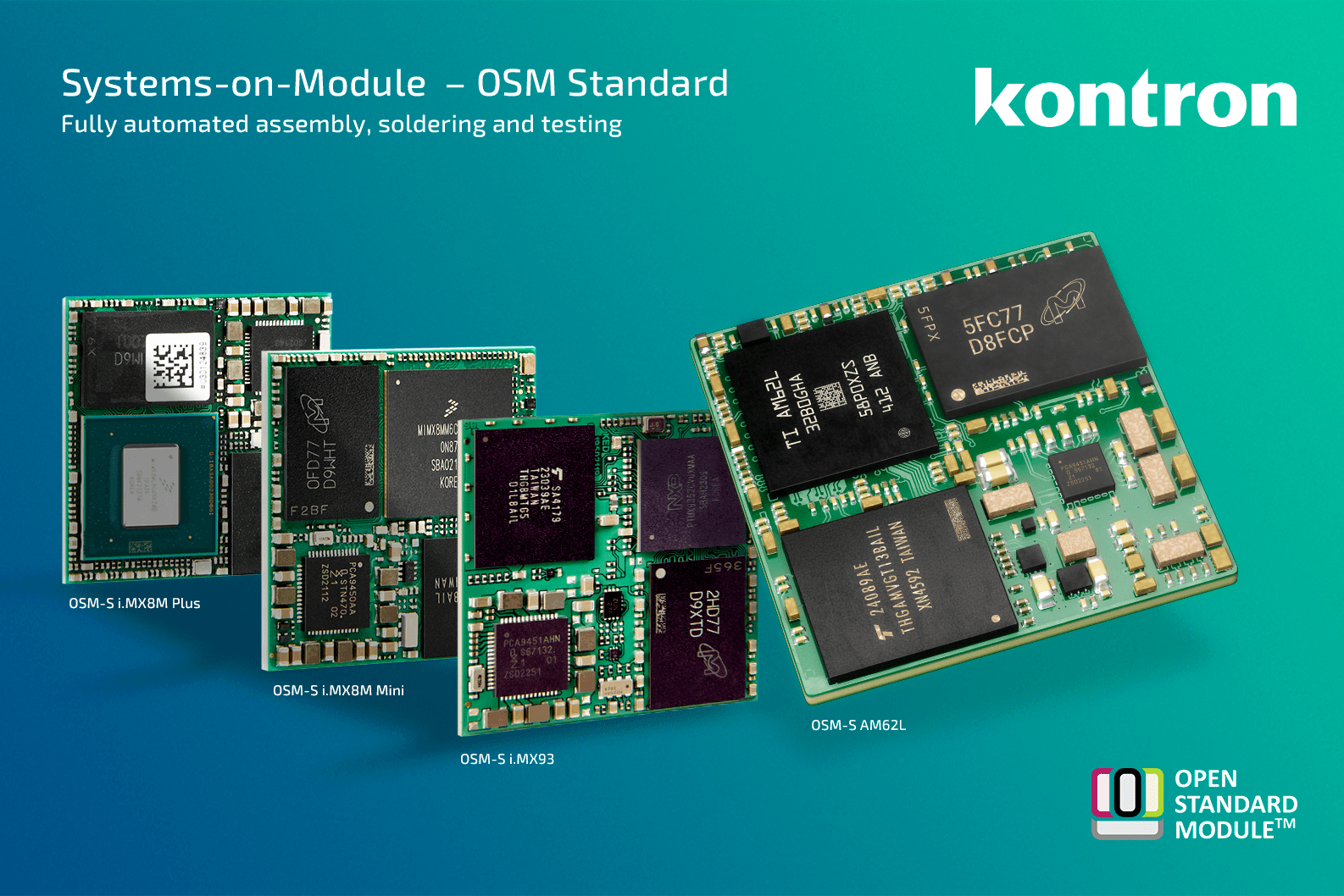 Kontron präsentiert ein breites Portfolio an Hardware Produkten von kleinen SoM Modulen, SBCs bis hin zu Motherboards.