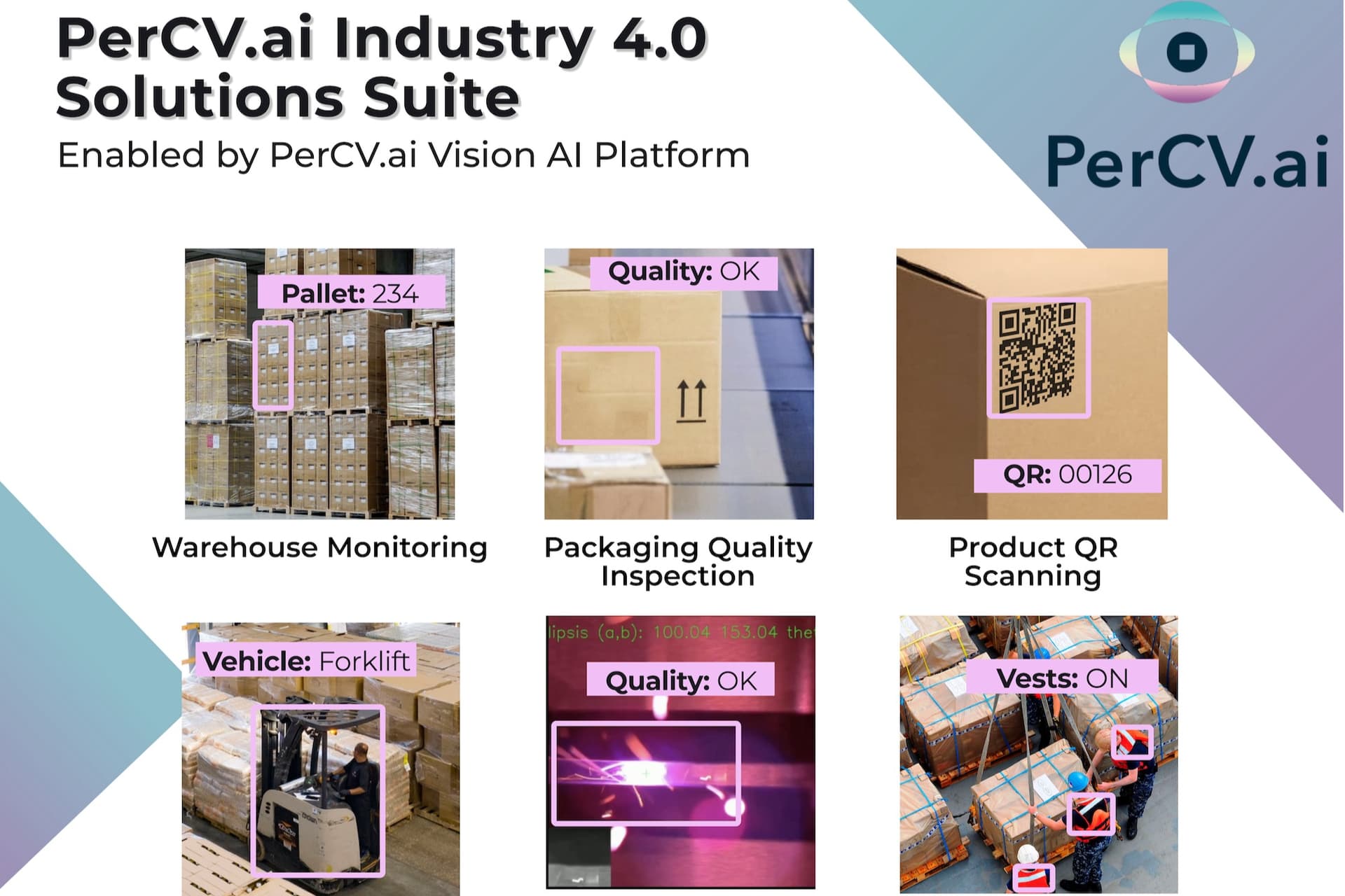 - Industry 4.0 Suite: Computer Vision AI Solutions for Autonomous Factories & Logistics Warehouse Monitoring Packaging Quality Inspection Product QR Scanning Analogue Gauge Digitization Laser Process Monitoring Personnel Safety PPE monitoring