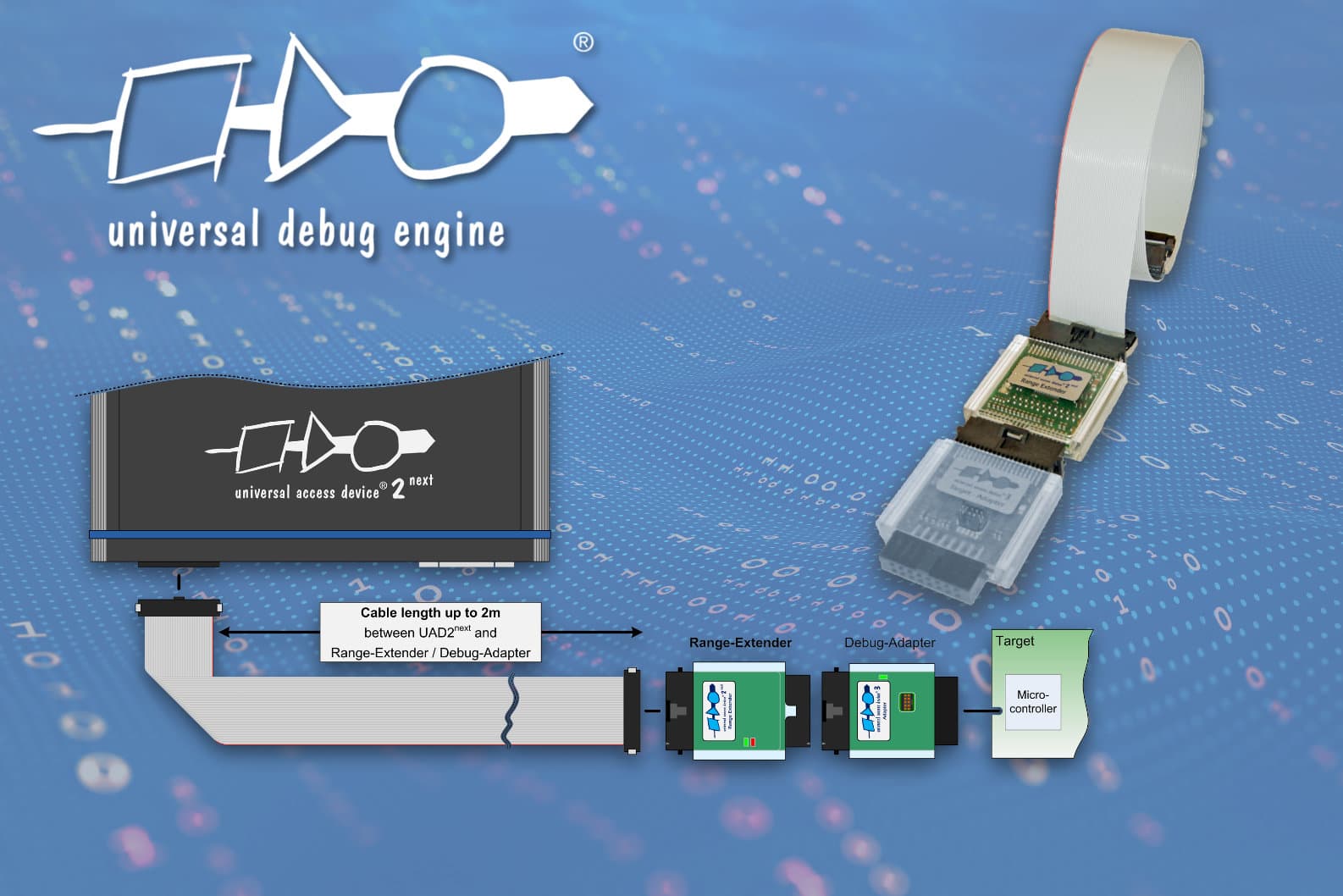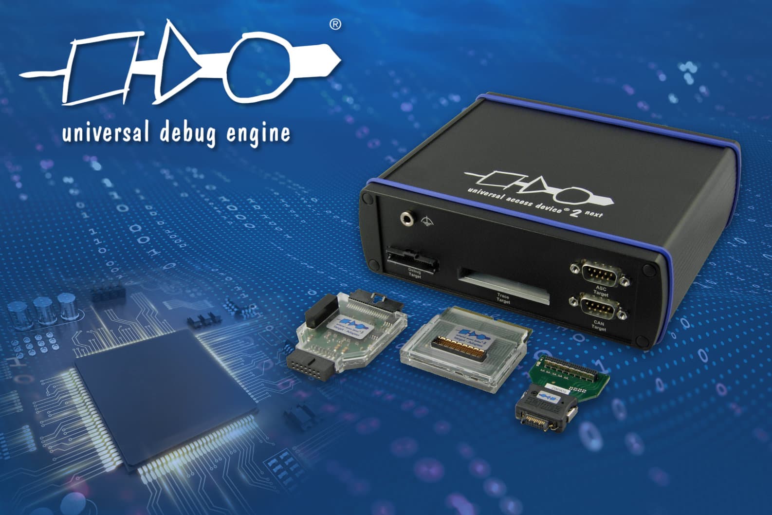 - Adapters for all common debug interfaces, galvanically isolated adapters and Range Extender available as an option